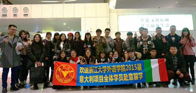 2016年1月7日,浙大外语学院32名图兰朵与马可波罗计划意大利留学学子踏上留学之路,搭乘飞机前往理想留学国度-意大利。家长的叮咛嘱咐,老师的殷切期望,学生们的喜悦憧憬,都定格在机场送别的那短短瞬间。