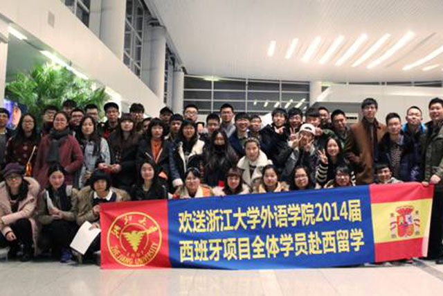 2015年1月23日19:30,浙江大学西班牙卓越人才培养项目的学生全体45人,在杭州萧山机场A岛集合,这次能够从杭州出境,大大便利了家长们的送机。