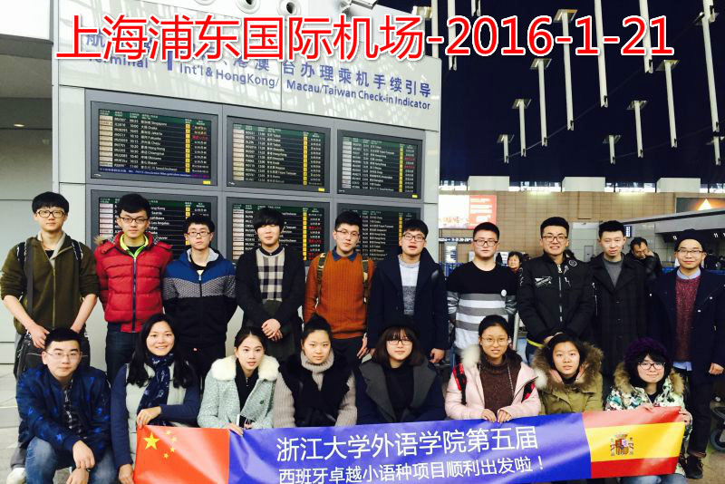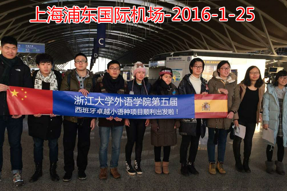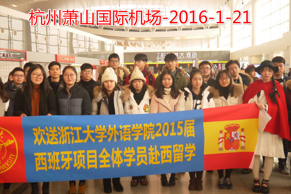 2016年1月21日与25日浙江大学西班牙卓越小语种人才培养项目的学生全体67名,分别在杭州萧山机场和上海浦东国际机场乘坐荷兰航空公司的班机赴西班牙马德里。