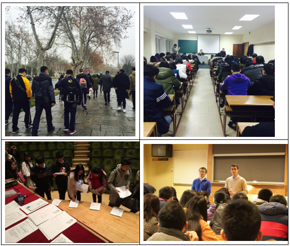 经过昨天在住家的休息和调整,西班牙早上10点钟,各个住家房东送学生到大学城地铁站集合。西班牙高校申请中心(简称GEC)杨老师在康普顿斯大学的教室组织召开了新生会议,以后每周都会在这里开会,了解学生们的近况以便及时照顾与解决问题。而今天,在班会上主要是给大家理一理头绪,认识今后开展各项服务的负责老师,了解短期内的课程和活动安排,清晰在西班牙待办事项的步骤和材料以及注意事项和各类问题的处理,明白今后的学习方向和各种注意点。