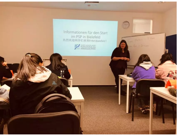 堂课由德语老师介绍预科重要信息:预科要修哪些课程,多少学时,什么时候考试,假期、课外活动如何安排,如何请假、看病,如何熟悉交通、垃圾分类等等,老师都一一讲解。随后老师让学生登记好联系方式--今后重要通知、上课、活动安排,都会通过邮箱发给各位学生。预科考试在来年6月份举行,4月份是模拟考。 一般来说,考试结束成绩出来以后,学生会有一个多月的时间申请德国大学的冬季学期。