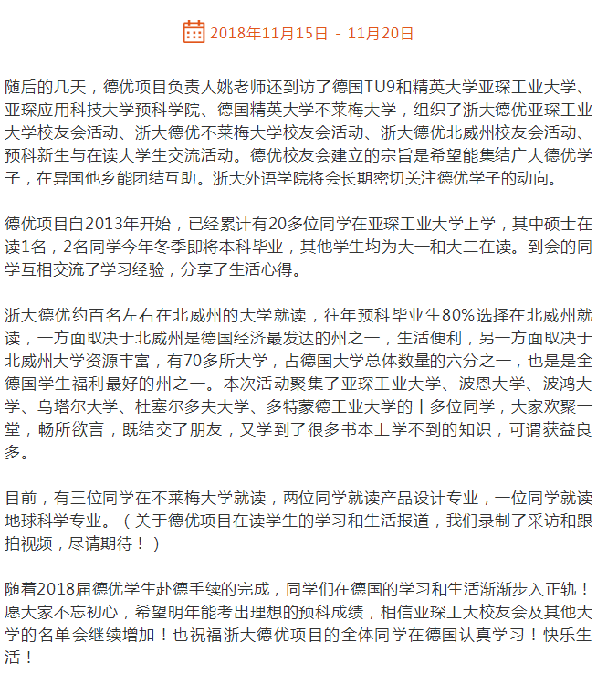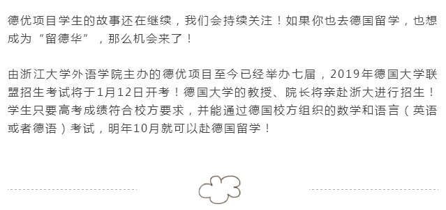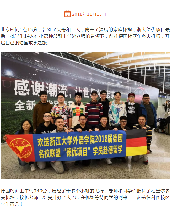 Hallo!德国!2018浙大德优后一批学生抵达德国 时间:2018-12-14信息来源:本站原创点击:次【 加入收藏 】【 字体:大 中 小 】 接机大巴前往科隆宿舍 2019首场德国校方入学考试即将开考 想要留学成本低,高中毕业就去德国留学!